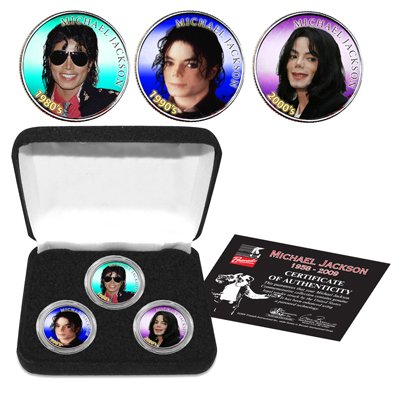 - Each coin is colorized with an image of Michael Jackson to represent the three decades of the 1980's, 1990's, and 2000's.